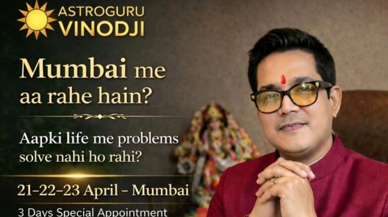 मुंबई की तेज़ रफ्तार जिंदगी के बीच जब लोग अपने भविष्य को लेकर स्पष्टता और संतुलन की तलाश में हैं, ऐसे में एक खास अवसर सामने आ रहा है। प्रसिद्ध वैदिक ज्योतिषी डॉ. विनोद आचार्य कुमार 21, 22 और 23 अप्रैल को शहर में विशेष ज्योतिष सत्र आयोजित करने जा रहे हैं, जो लोगों को जीवन के अहम सवालों के जवाब देने का वादा करते हैं।